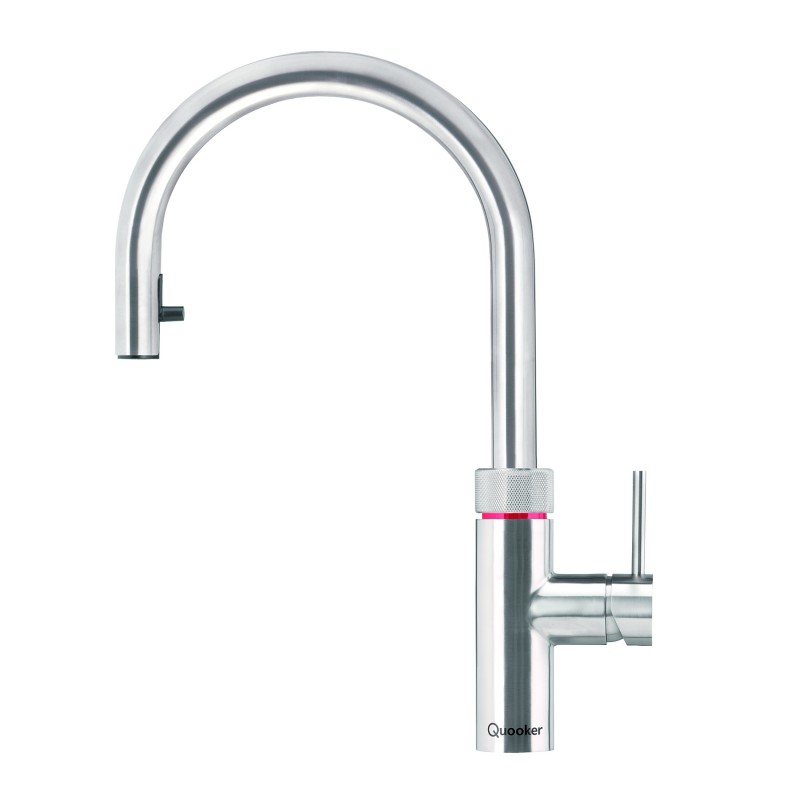 Uitgevoerd in het frisse design waar Quooker bekend om staat: een ronde uitloop in twee finishes, chroom en roestvrij staal.