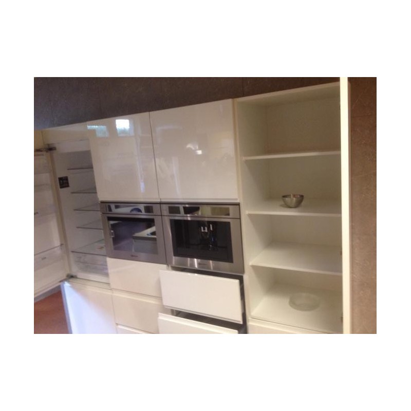 Deze hooggkans gelakte greeploze keuken is van het merk Nobilia