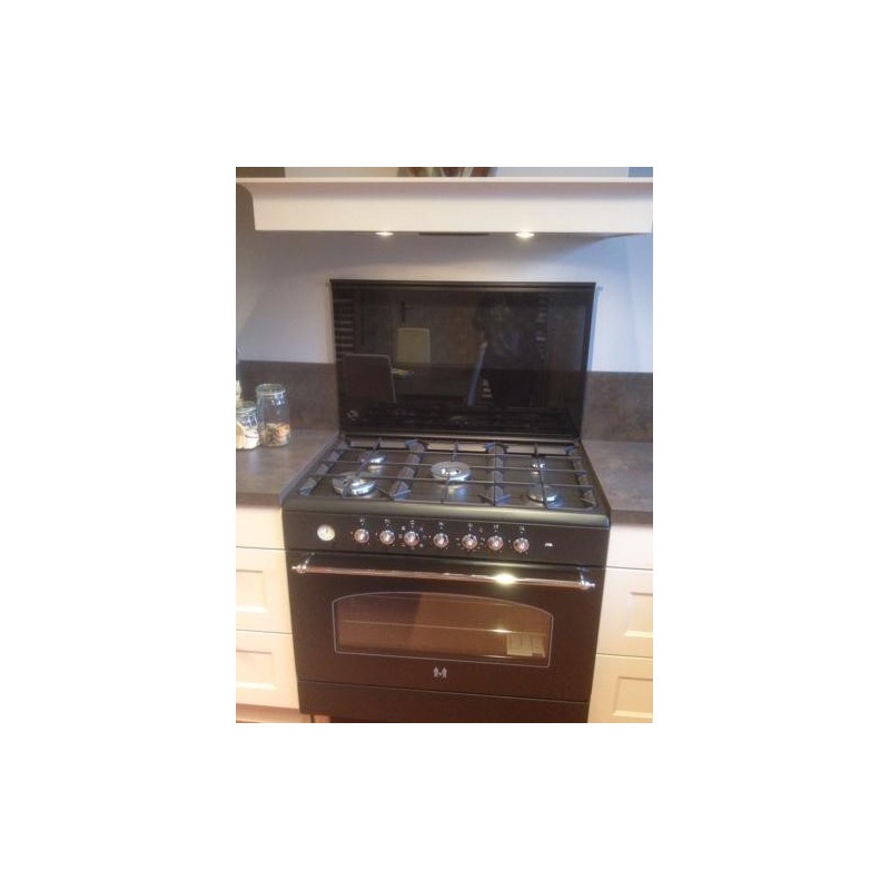 Deze luxe hoogglans greeploze keuken incl. bosch-apparatuur: grote koelkast, combi-magnetron, vol automatische inbouwkoffiezetter, vaatwasser, gaskookplaat met wokbrander en franke afzuigkap. Verder is deze keuken voorzien van een kookeiland, met 120cm brede pannenlades en in het eiland zitten ook spoelbak en kraan in verwerkt. Het werkblad is van graniet. Aan de achterzijde van het eiland zit ook nog kastruimte en een nisje met graniet. Kortom: van alle luxe voorzien. De kastenwand is 250cm breed. Het eiland is 250 x 92cm